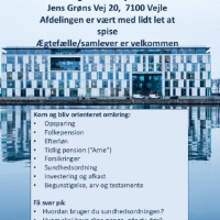 Pension Danmark giver information om Efterløn, Tidlig Pension (Arne), Folkepension, Forsikringer mv. mandag den 29. april kl. 17.00 på Jens Grøns Vej 20, 7100 Vejle. Tilmeld dig og evt. din ægtefælle/samlever senest 22. april.